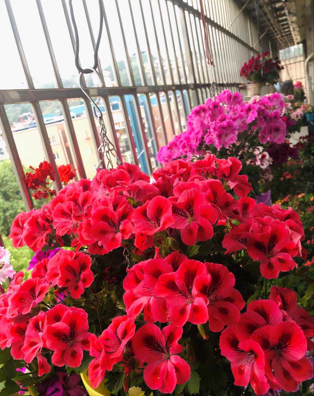 特别是那些大花天竺葵,虽然它们的花期集中在春天秋天,但是开起花来简直是不要命似的开,如果你修剪得当,它能开成直径一米的大花球。有些朋友是最爱天竺葵的,在家里的阳台上只养天竺葵,简直是五颜六色的花园。