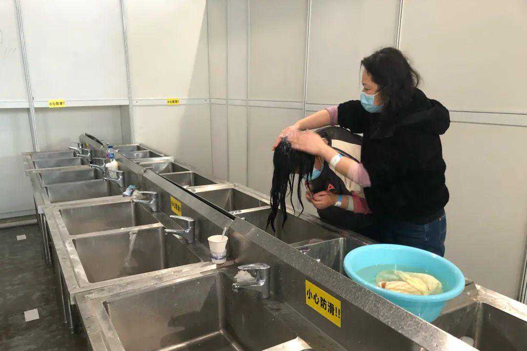 到了方舱医院洗头洗澡怎么办?看来得根据实际情况因地制宜。昨晚在水池边,我看到了不怕冷的爷叔直接在水龙头边上穿着短裤洗澡,其“硬汉”形象让人刮目相看,毕竟我们都还是病人。